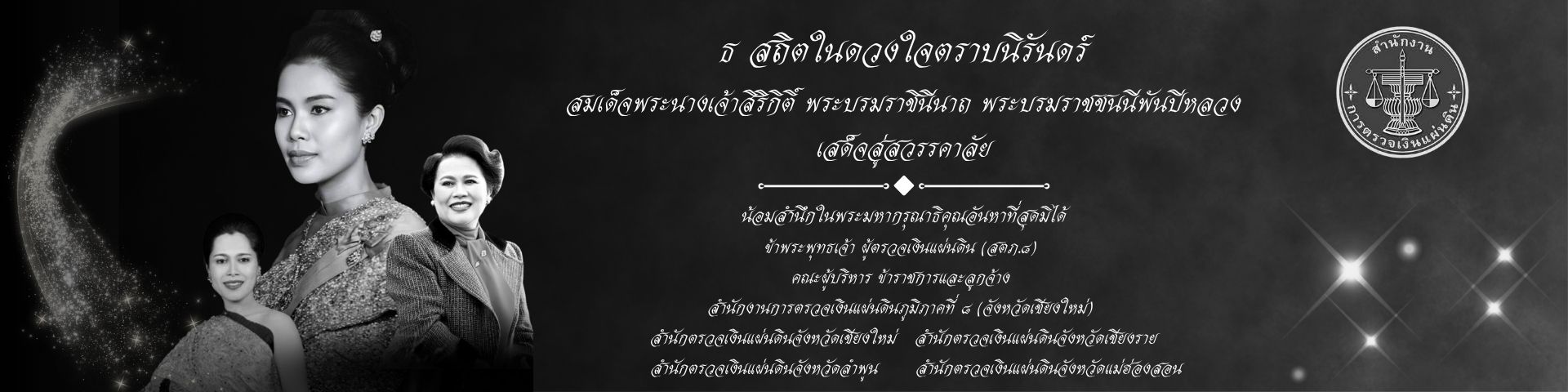 พุธ, 1 เมษายน 25692569-03-27 สำนักงานการตรวจเงินแผ่นดินร่วมเป็นเจ้าภาพในการบำเพ็ญกุศลถวายพระบรมศพสมเด็จพระนางเจ้าสิริกิติ์ พระบรมราชินีนาถ พระบรมราชชนนีพันปีหลวง