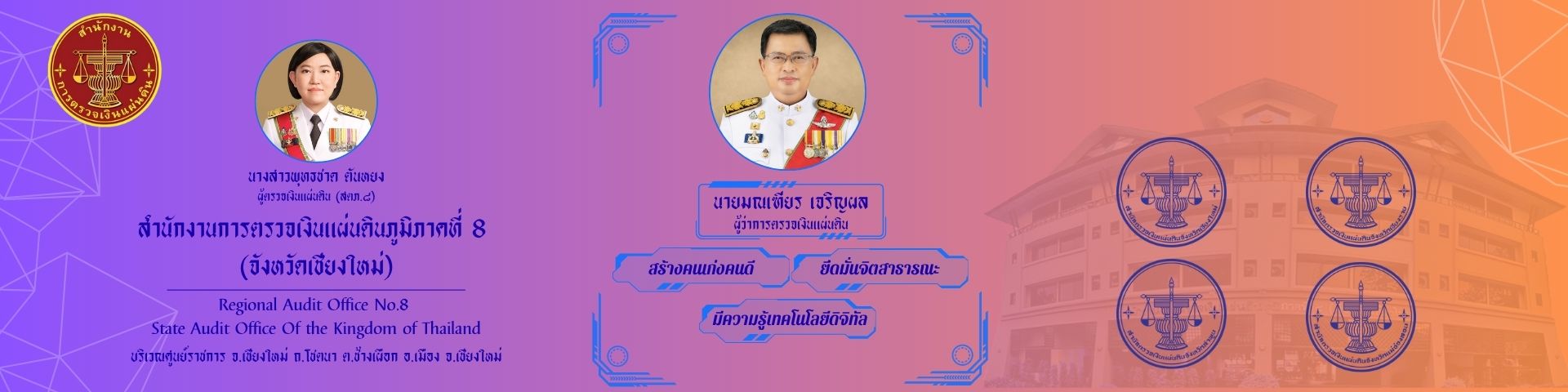 โครงการสัมมนาเพื่อเตรียมความพร้อมการจัดทําแผนปฏิบัติราชการ ปีงบประมาณ พ.ศ. 2570 และทิศทางการปรับเปลี่ยนสู่การตรวจเงินแผ่นดินดิจิทัลของสํานักงานการตรวจเงินแผ่นดินศุกร์, 27 มีนาคม 25692569-03-26 พิธีสวดพระพุทธมนต์และพิธีทำบุญ ครบ 1 ปี อาคาร สตง. (แห่งใหม่) ระหว่างก่อสร้างทรุดตัว ณ สำนักงานการตรวจเงินแผ่นดิน