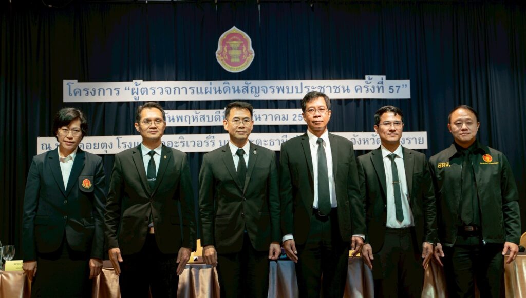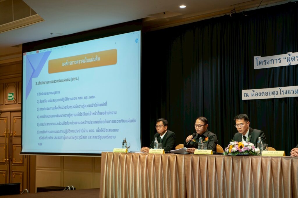 วันที่ ๑๘ ธันวาคม ๒๕๖๘ นางสาวพุทธชาด ตันหยง ผู้ตรวจเงินแผ่นดิน (สตภ.๘) นายปริญญา ฉันทวรางค์ รองผู้ตรวจเงินแผ่นดิน (สตภ.๘) และนางสาวสิรภัทร โปทาดี ผู้อำนวยการสำนักตรวจเงินแผ่นดินจังหวัดเชียงราย พร้อมข้าราชการสำนักตรวจเงินแผ่นดินจังหวัดเชียงราย เข้าร่วม “โครงการผู้ตรวจการแผ่นดินสัญจรพบประชาชน ครั้งที่ ๕๗” และในช่วงบ่าย ผู้ตรวจเงินแผ่นดิน (สตภ.๘) มอบหมายให้ นายปริญญา ฉันทวรางค์ รองผู้ตรวจเงินแผ่นดิน (สตภ.๘) ร่วมเสวนาองค์กรตามรัฐธรรมนูญ ๕ องค์กร ในหัวข้อ “หน้าที่และอำนาจองค์กรตามรัฐธรรมนูญ พ.ศ.๒๕๖๐” ณ ห้องดอยตุง โรงแรมเดอะริเวอร์รี่ บาย กะตะธานี อำเภอเมือง จังหวัดเชียงราย