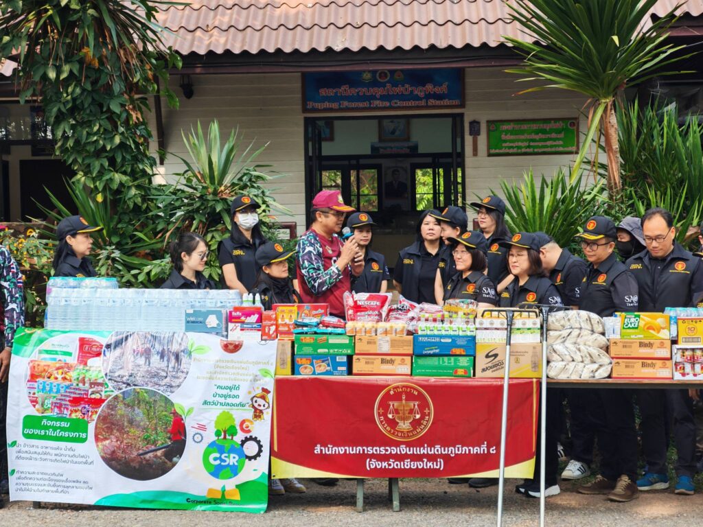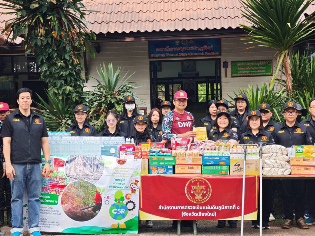 วันศุกร์ที่ ๒๐ กุมภาพันธ์ ๒๕๖๙ นางสาวพุทธชาด ตันหยง ผู้ตรวจเงินแผ่นดิน (สตภ.๘) นายนิกร ตาสา ผู้อำนวยการสำนักตรวจเงินแผ่นดินจังหวัดเชียงใหม่ นางสาวสิรภัทร โปทาดี ผู้อำนวยการสำนักตรวจเงินแผ่นดินจังหวัดเชียงราย นายจิตติ ตันเสนีย์ ผู้อำนวยการสำนักตรวจเงินแผ่นดินจังหวัดแม่ฮ่องสอน และนางสาวจุฬาลักษณ์ อินทรพัฒน์ ผู้อำนวยการสำนักตรวจเงินแผ่นดินจังหวัดลำพูน มอบหมายให้นายเกรียงศักดิ์ แสงพิทักษ์ นักวิชาการตรวจเงินแผ่นดินชำนาญการพิเศษเป็นตัวแทน พร้อมข้าราชการและลูกจ้างในสังกัดพื้นที่รับผิดชอบ ๔ จังหวัด ร่วมกันจัดกิจกรรม CSR “คนอยู่ได้ ป่าอยู่รอด สัตว์ป่าปลอดภัย” โดยนำ ข้าวสาร อาหารแห้ง น้ำดื่ม ของใช้ที่จำเป็น ไปมอบให้กับเจ้าหน้าที่ดับไฟป่าของสถานีควบคุมไฟป่าภูพิงค์ โดยมีนายกริชสยาม คงสตรี ผู้อำนวยการสำนักบริหารพื้นที่อนุรักษ์ที่ ๑๖ (เชียงใหม่) เป็นผู้แทนรับมอบ และร่วมกันทำกิจกรรม บำรุง-ปรับปรุงแนวกันไฟ บริเวณสถานีควบคุมไฟป่าภูพิงค์ ตำบลสุเทพ อำเภอเมืองเชียงใหม่ จังหวัดเชียงใหม่